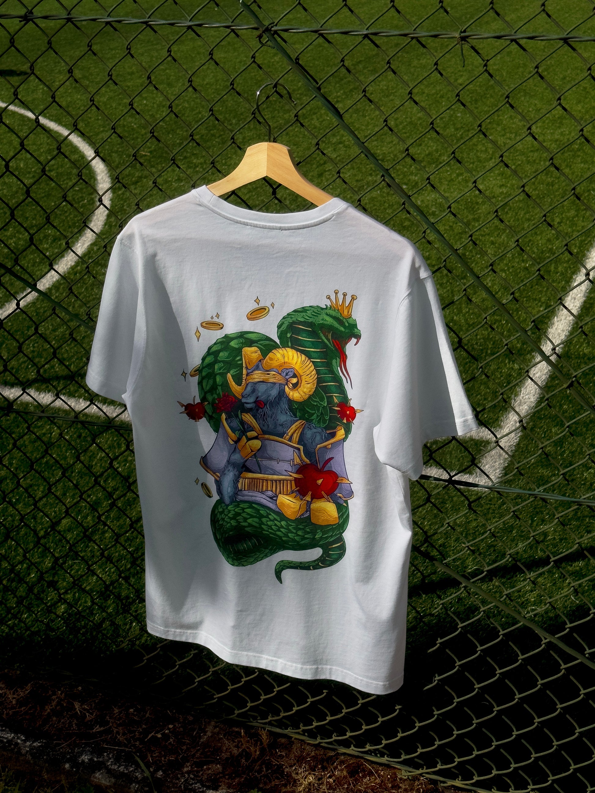 Quando os olhos se perdem no que não se pode ter e o corpo anseia pelo que é proibido, nasce uma combinação irresistível. Esta t-shirt representa o jogo entre a inveja que consome e a luxúria que seduz. Para quem é movido pelo desejo de mais e pelo prazer de se destacar. Veste o olhar, veste o desejo.